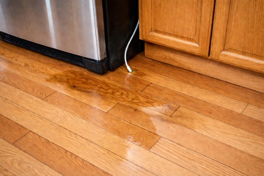 Hidden Mold & Subfloor Damage: Water seeps through to the plywood or OSB subfloor. In the dark, warm space behind a fridge, mold can begin to colonize in as little as 48 hours.